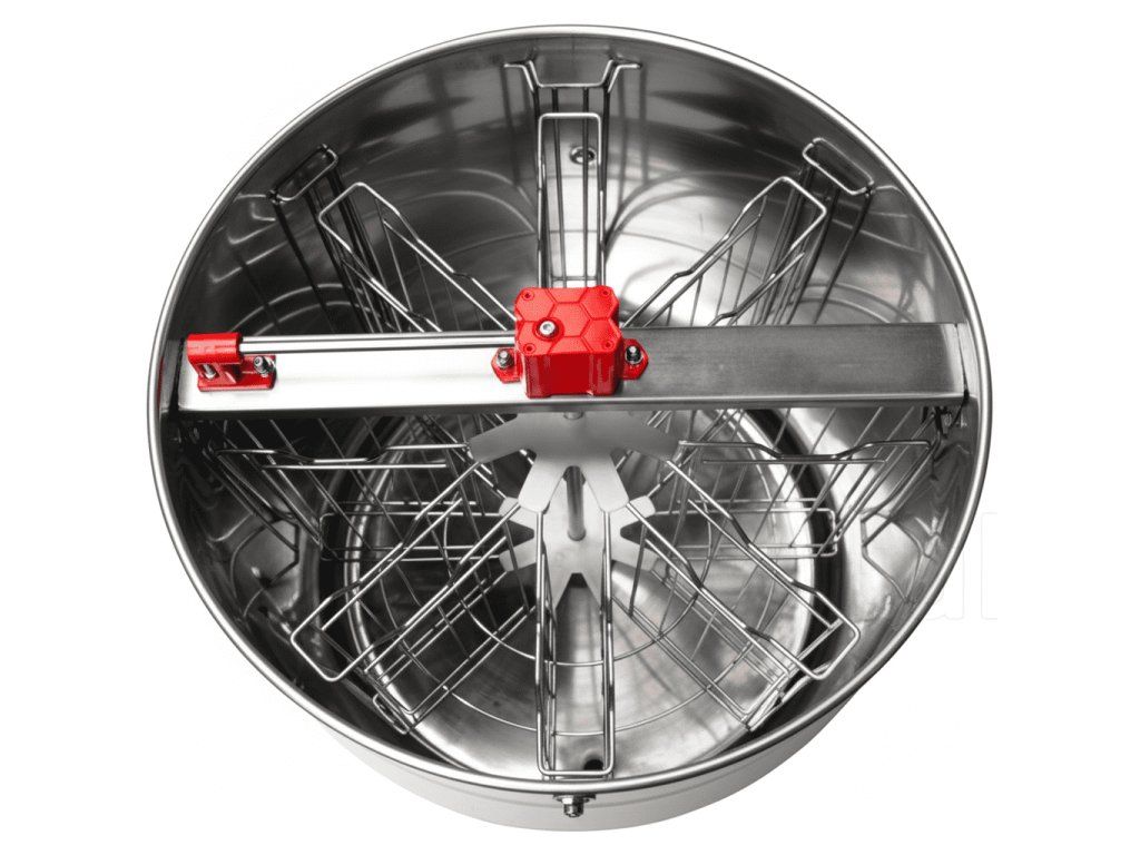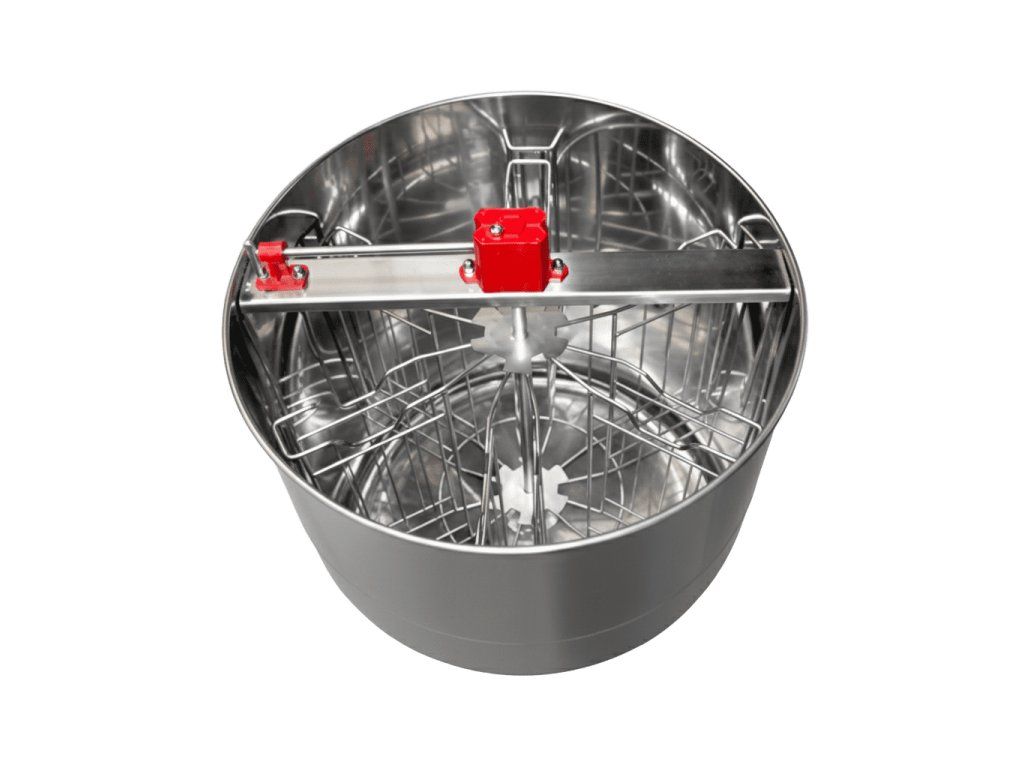 8rámkový ruční radiální nerezový medomet s nerezovým výpustním kohoutem, který je navařený na dně bubnu.