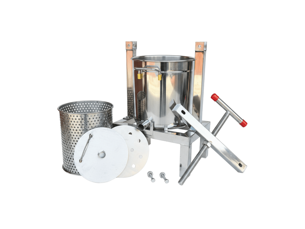 Univerzální lis vhodný k lisování medu, ovoce i rozehřátého vosku v pytlích - pytle vhodné z naší nabídky vhodné o rozměru 30x60cm.